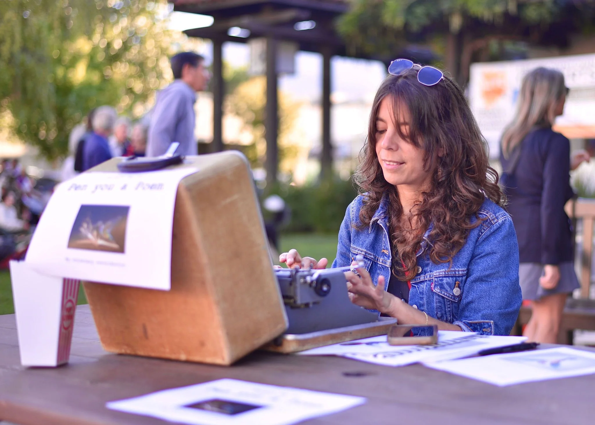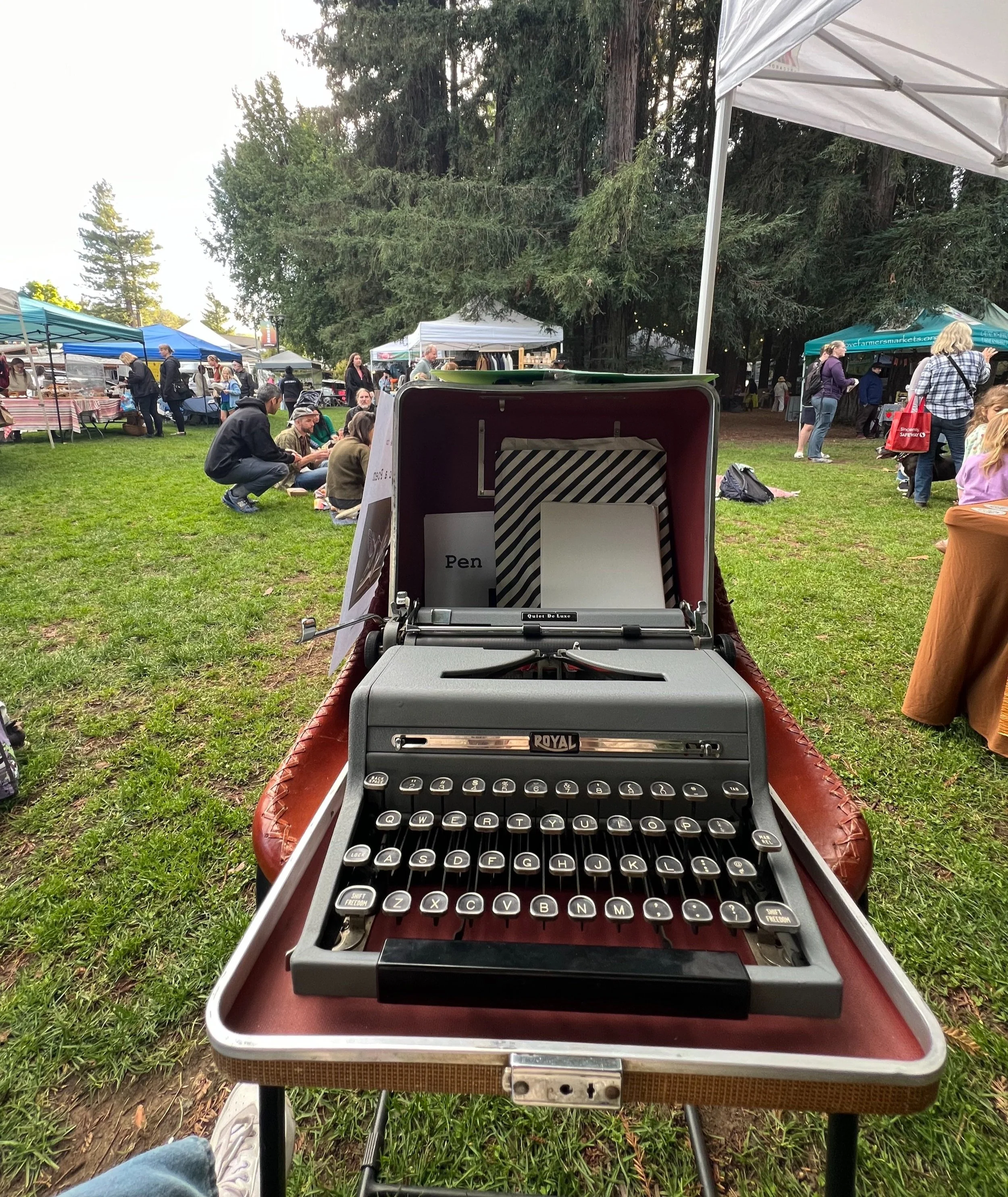 if you tell us a little bit about what you’re chewing on, my typewriter and I will help to massage and process your experience into poetry- either on the spot, or sent via snail mail to a physical address.